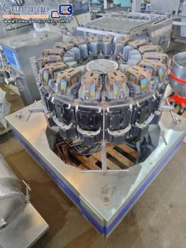 Embaladora vertical multi-cabeça automática para produtos sólidos e grãos.Sistema completo de embalagem empacotamento multicabeçote com esteira de elevação, plataforma e silo vibratório.Fabricante | marca: MASIPACK.- Embaladora empacotadora dosadora vertical automática contínua. Modelo: 0600220000. Medidas aproximadas: Altura: 2,0 m.Largura: 1,5 m.Comprimento: 2,5 m.Largura mordente 270 mm.- Cabeçote multi-cabeça com 16 balanças.Modelo MXCP-16. Capacidade máxima de pesagem até: 2,5 Kg. Para produtos sólidos e grãos. Dispõe de painel Allen-Bradley PanelView 550. Dimensões aproximadas: Largura: 1,3 m.Comprimento: 1,55 m.- Esteira elevatória inclinada com taliscas (Esteira Girafa).Modelo: 5600690000. Ano de Fabricação: 2003. Dimensões aproximadas:Altura: 5,5 m.Largura total: 1,5 m.Largura Esteira: 700 mm. - Silo vibratório para embaladoras verticais multi cabeças.Modelo: MXSV 2300030000. Dimensões aproximadas: Altura: 1,45 m.Largura: 1,2 m.Comprimento: 2,7 m.- Plataforma com dimensões Altura 2,5 m x Largura 2,5 m x Comprimento 2,5 m.